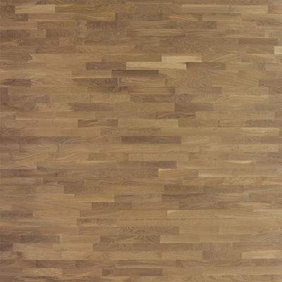 Легко брашированная трехполосная доска из дуба, покрыта белым маслом. Допускается: сильный разнотон; заболонь; сердцевинные лучи; темные полосы; редкая синева; редкие сросшиеся сучки; групповые булавочные сучки.